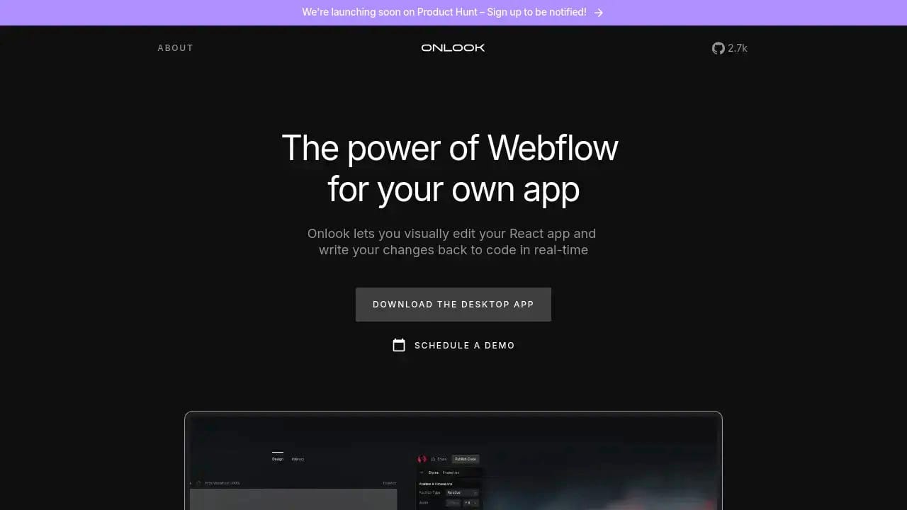 OnlookA desktop app that allows you to visually edit React applications and automatically write changes back to your code in real-time. |