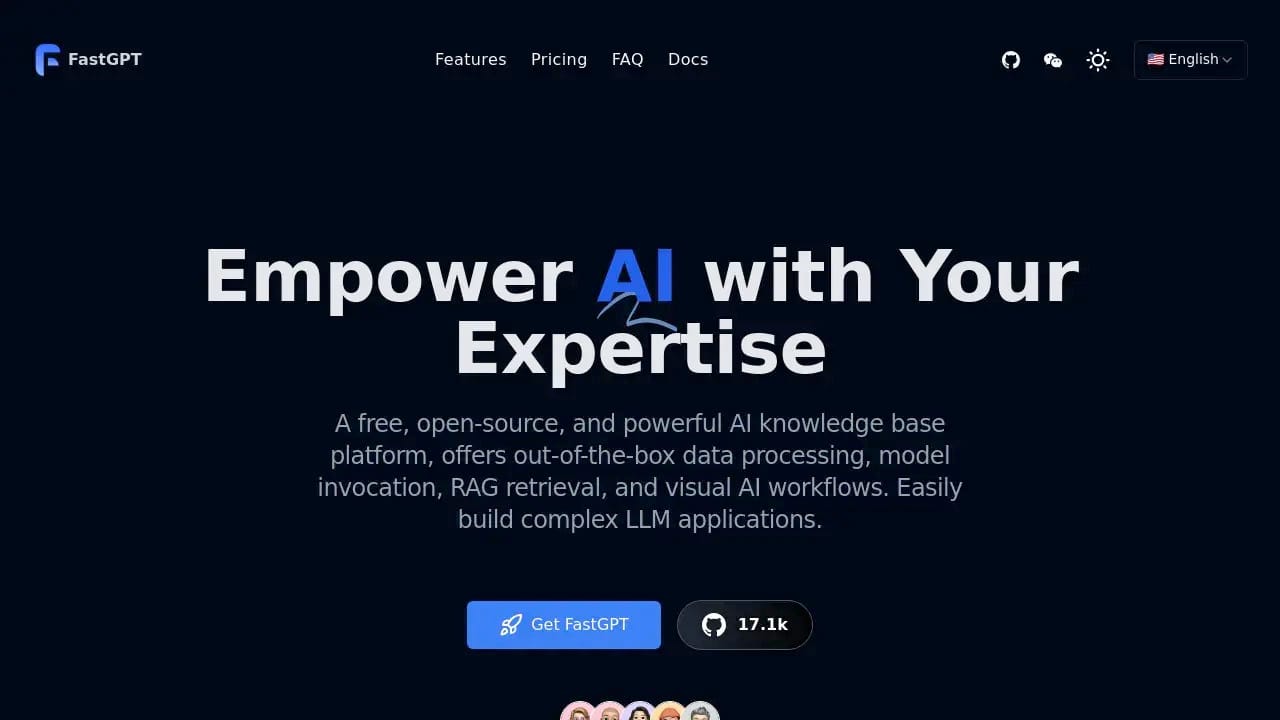 FastGPTA free platform for creating AI-powered knowledge bases with data processing, model invocation, and visual workflows. |